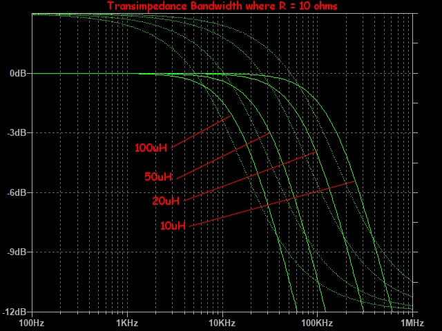 The previous version of this page showed a comparison graph showing the effects of lowering inductance, while loaded by 200pF and 47k. Although correct, my apologies for any confusion caused by implication that all MC cartridges have a self-inductance as high as 5mH.